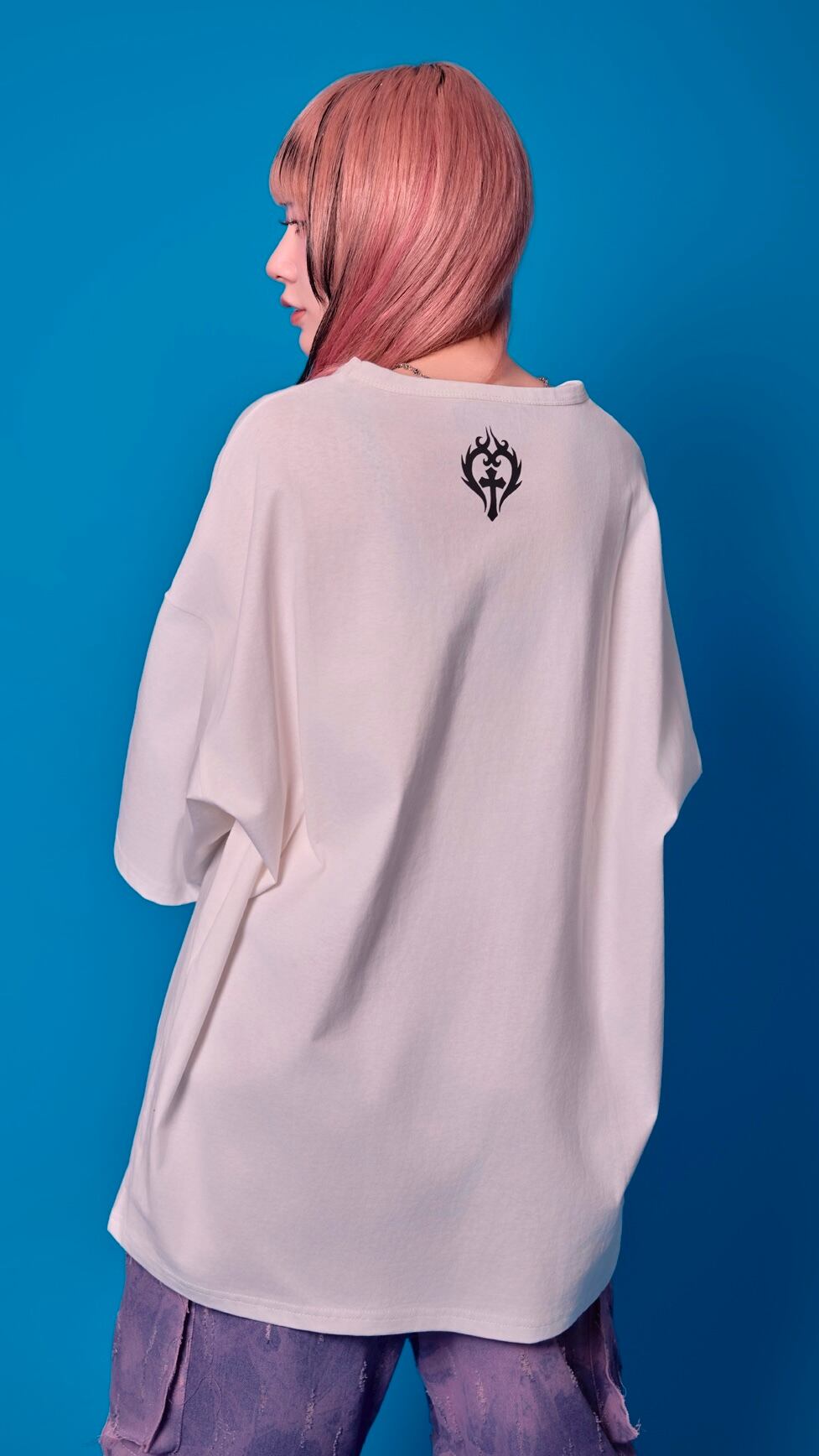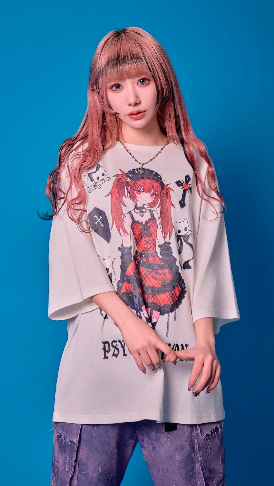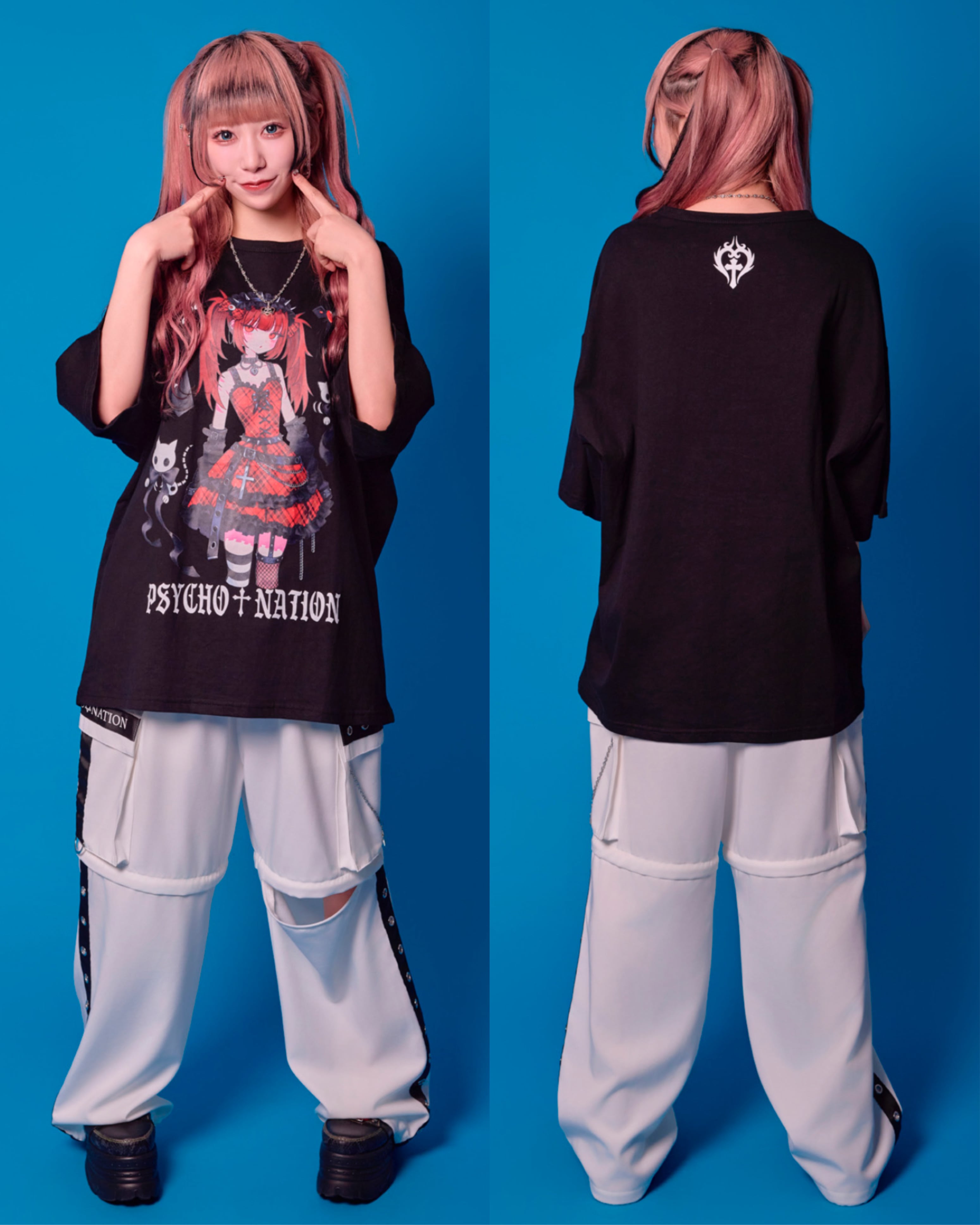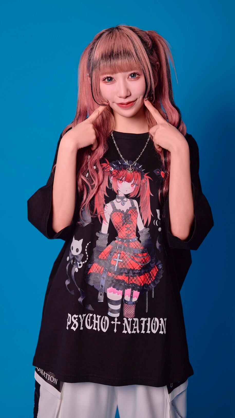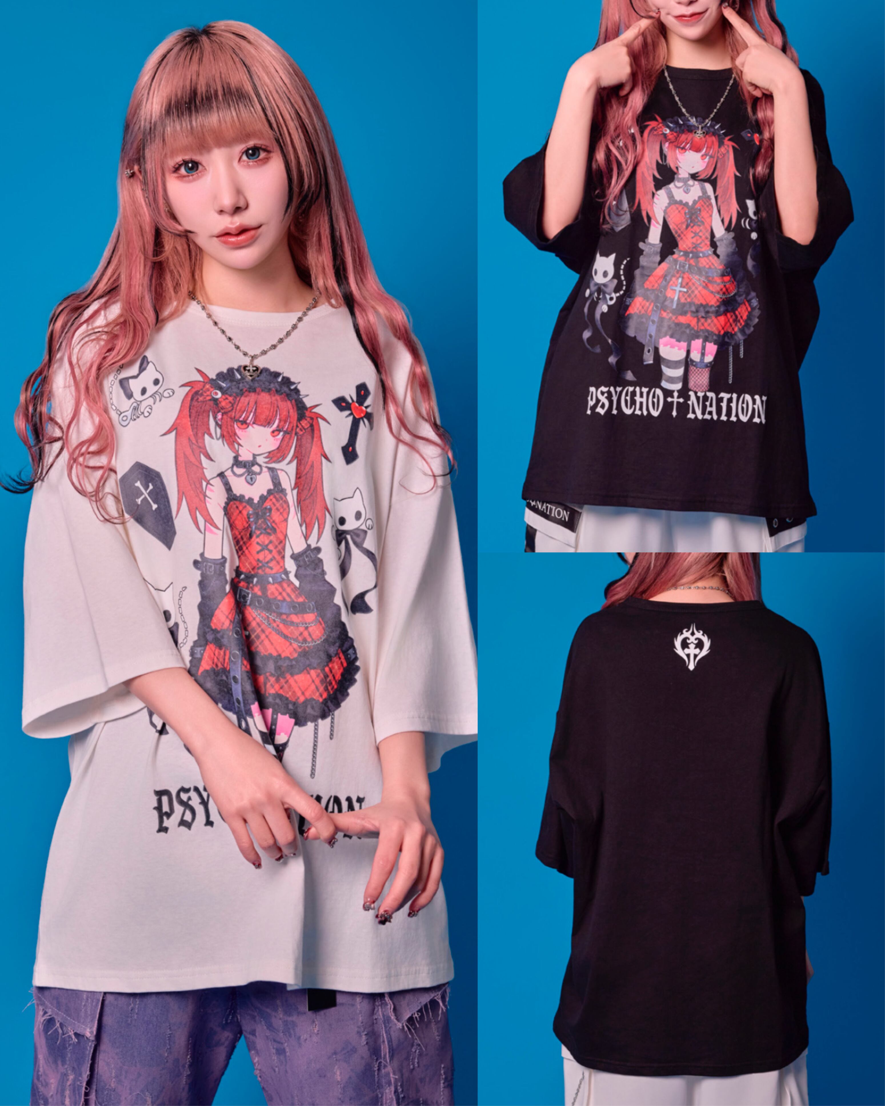 人気イラストレーター寝田ルネとのコラボレーション・アイテム!オーバーサイズTシャツ登場!フロントに寝田ルネ書き下ろしのパンクチーフのイラスト入り。バックにはPSYCHO NATIONのロゴをデザインしたかっこかわいい、ロックテイスト溢れるデザイン。男女問わず、ジェンダーレスに使えるゆったり大きめのオーバーサイズのサイジングは体型カバーできるので体型に拘わらず着用頂けます。