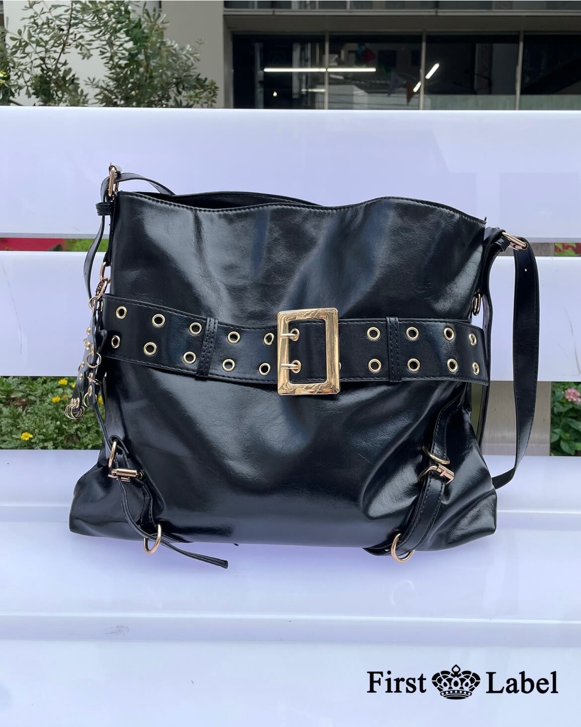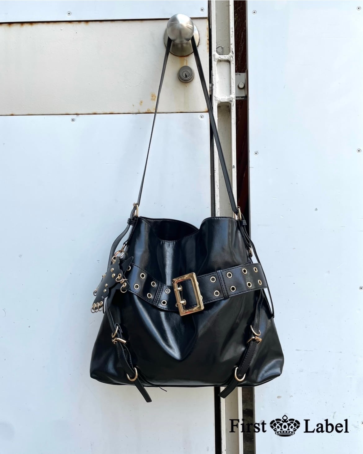 バックルレザーショルダーバッグ