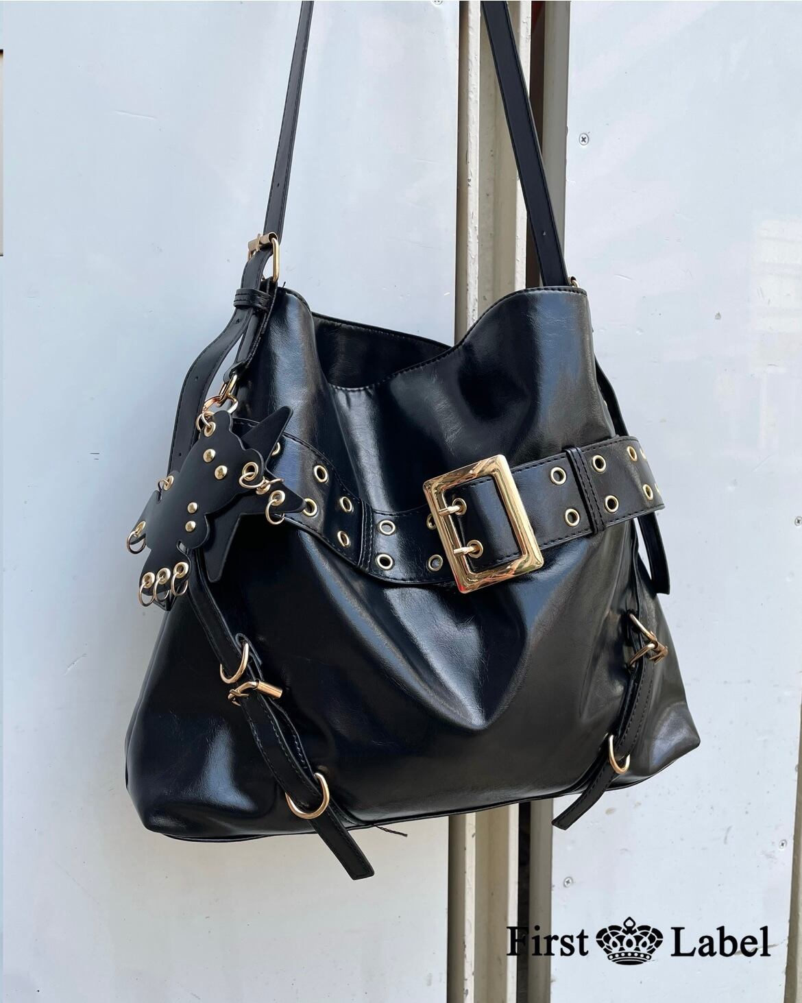 斜めがけ/PUレザー/フェイクレザー/大容量バッグ/サブカル/y2k