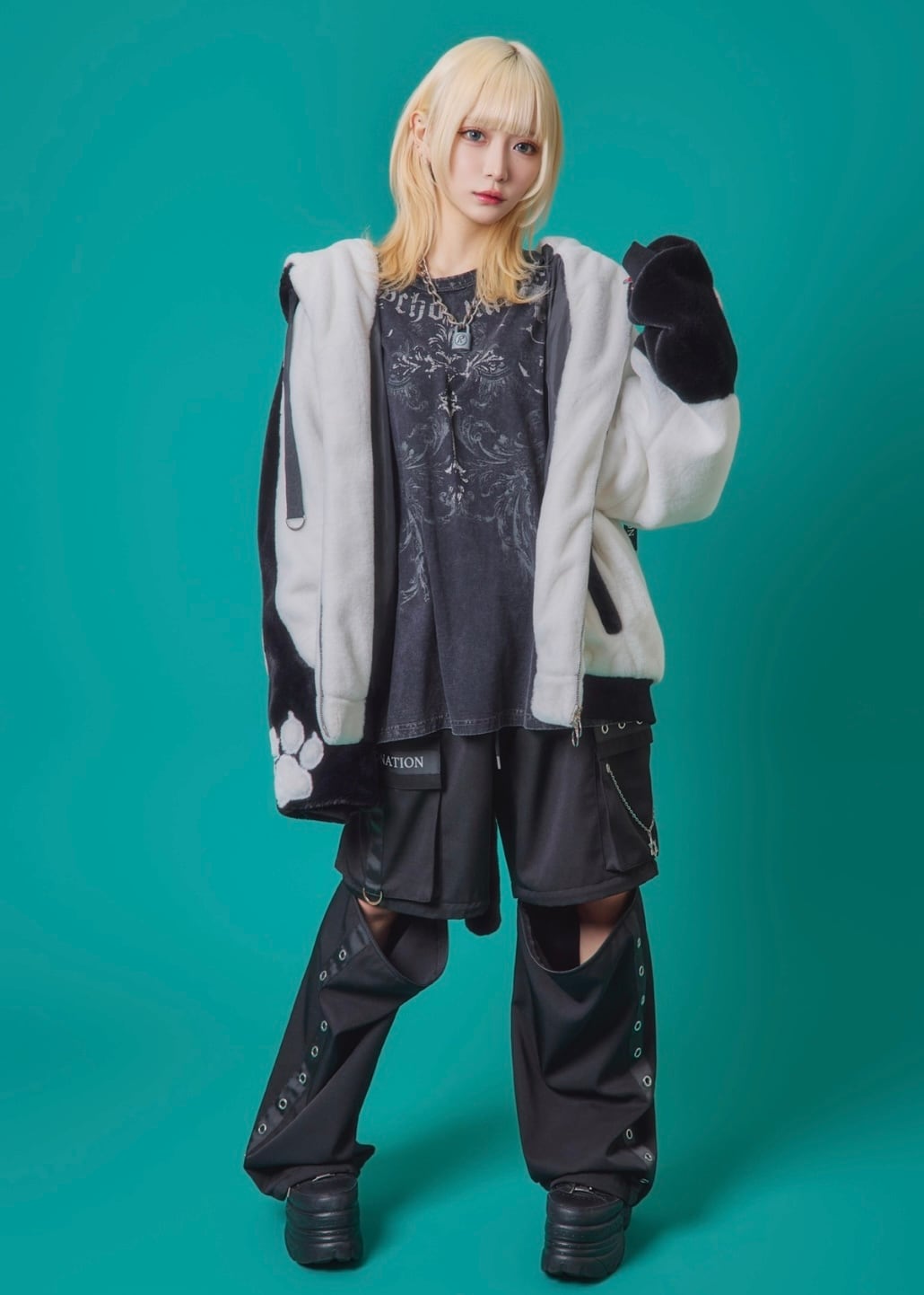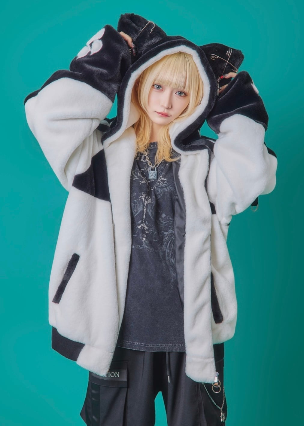 可愛い+punkなデザインを加えた猫耳と個性的で病みカワなアウター。暖かみがあり柔らかくふんわりしたファー素材は肌さわりが良く着心地抜群!