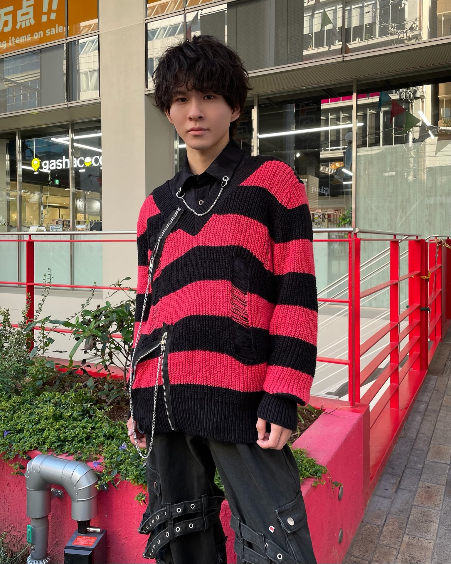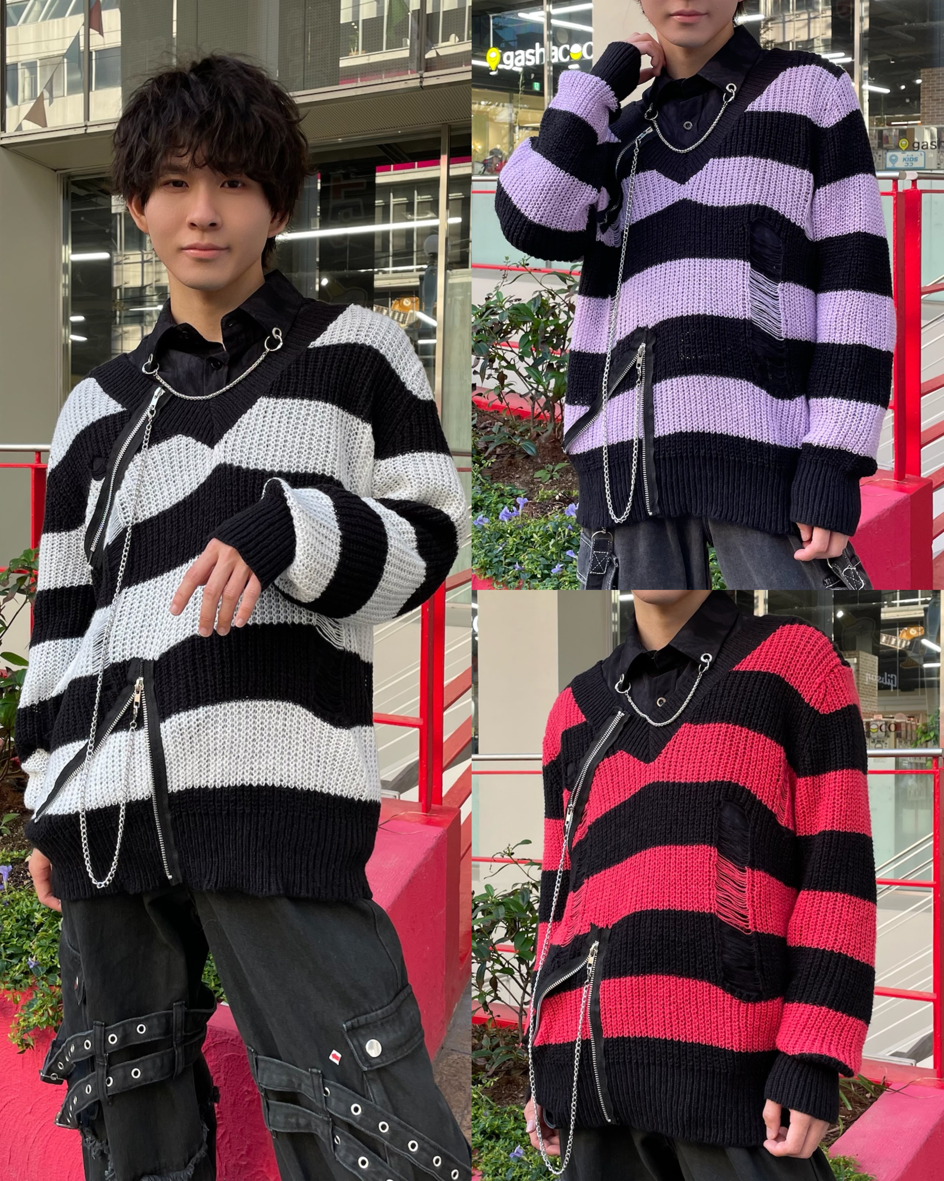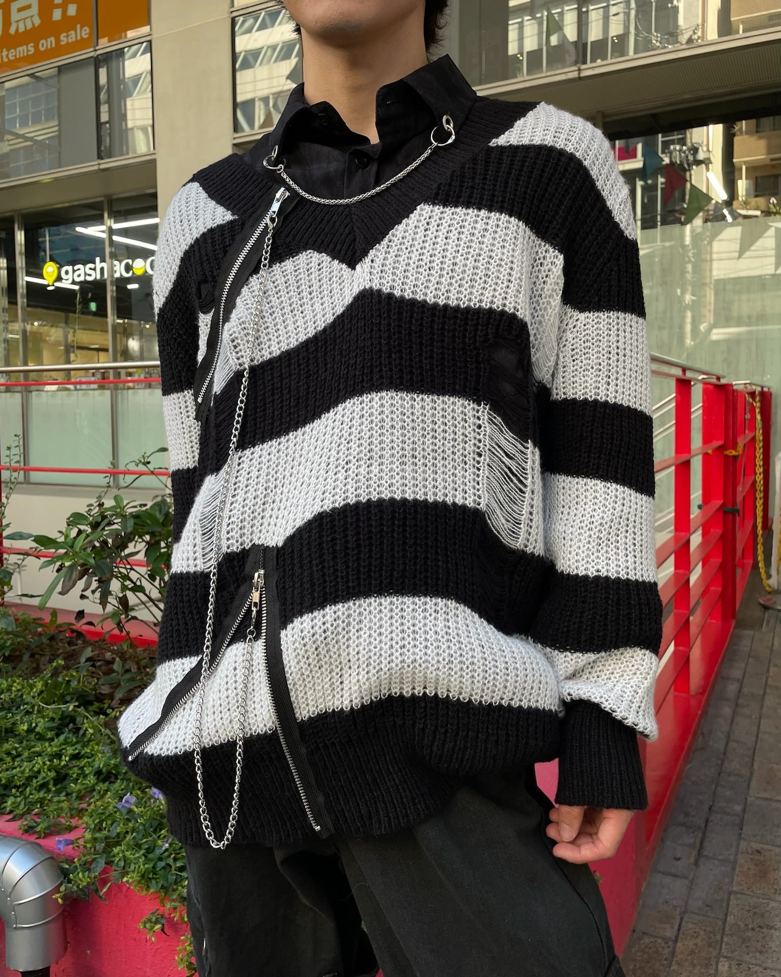 随所に施したダメージ加工がインパクト大!ZIPチェーン付き☆薄手の生地感となります。y2k、サブカルにも着用頂ける一枚。