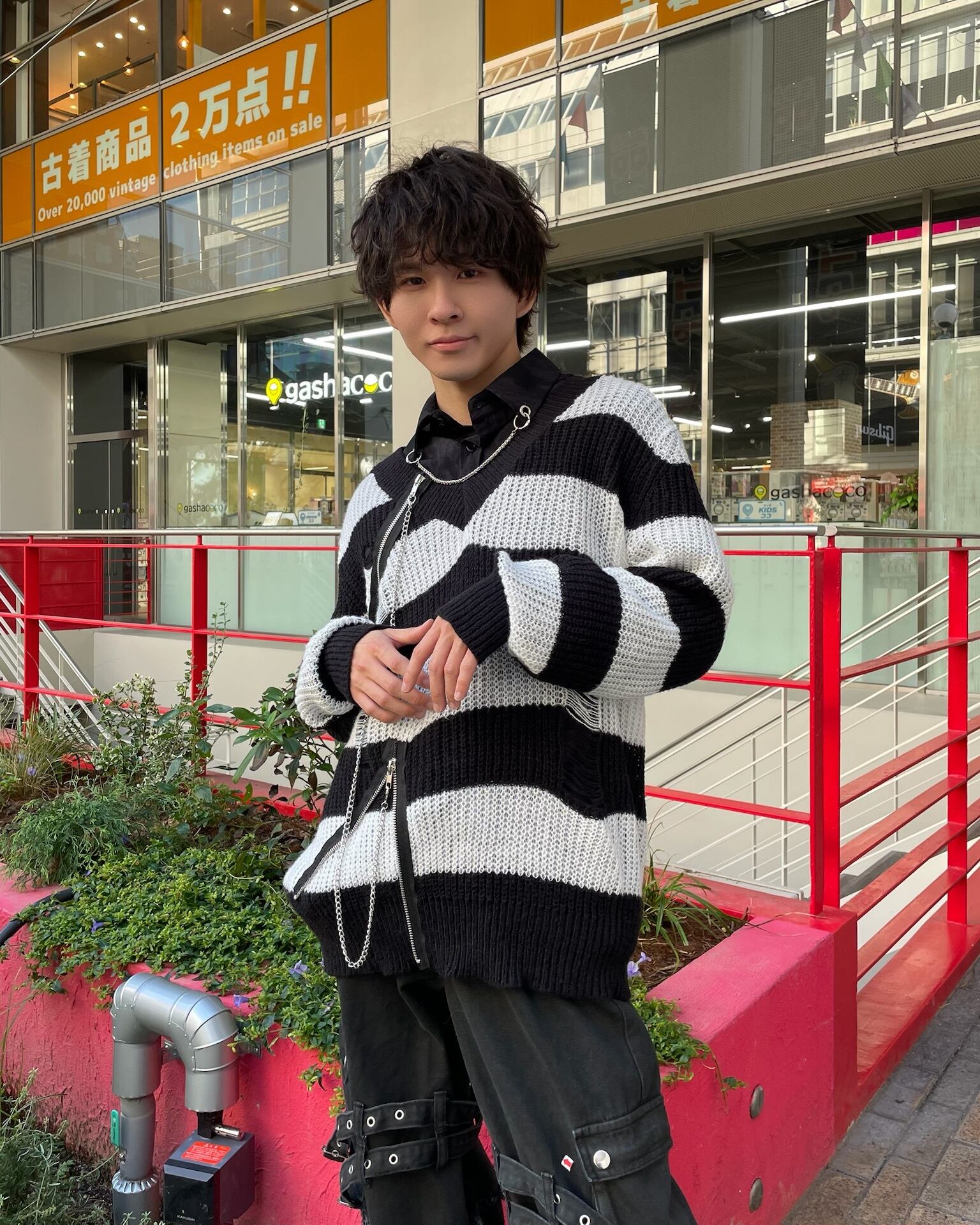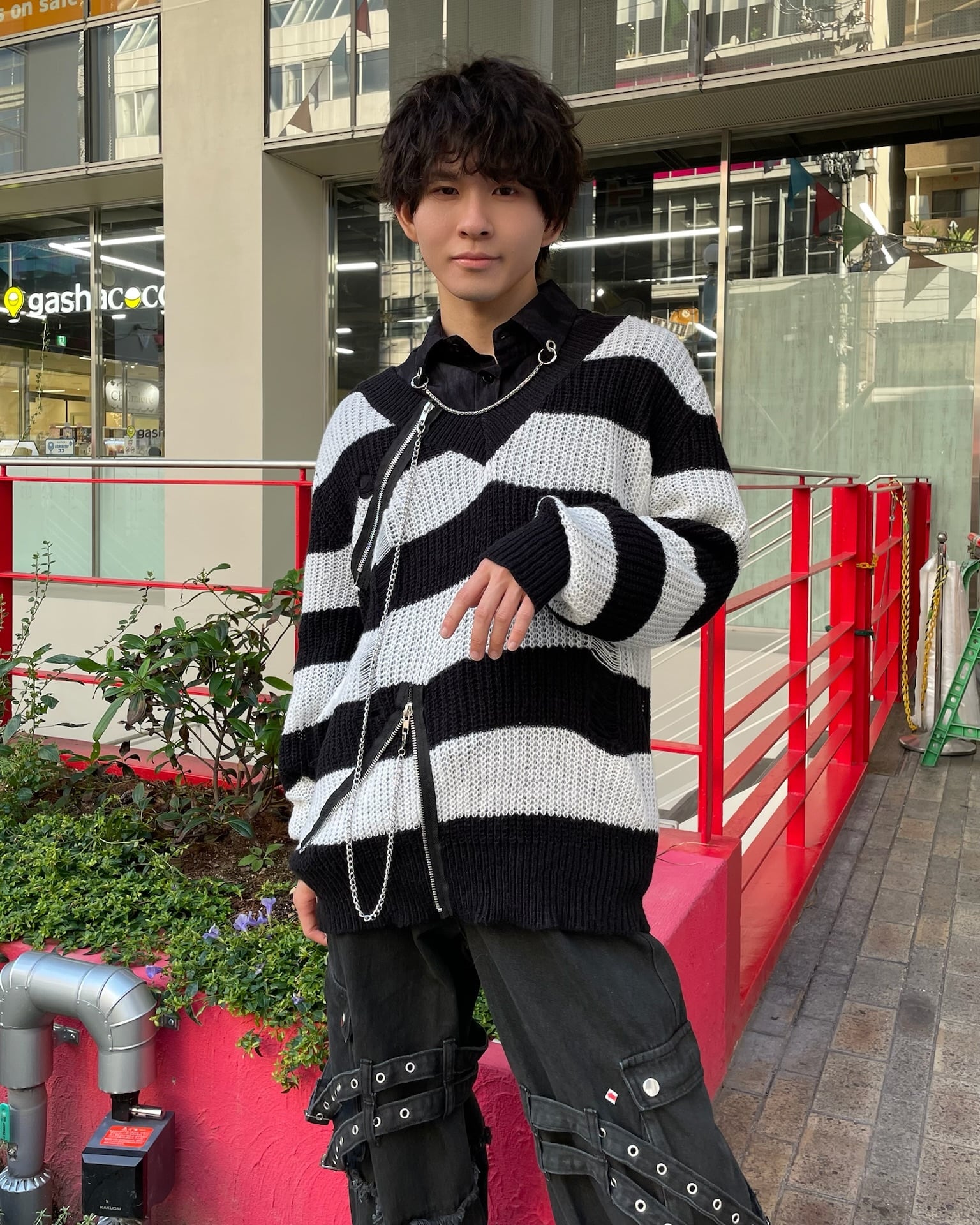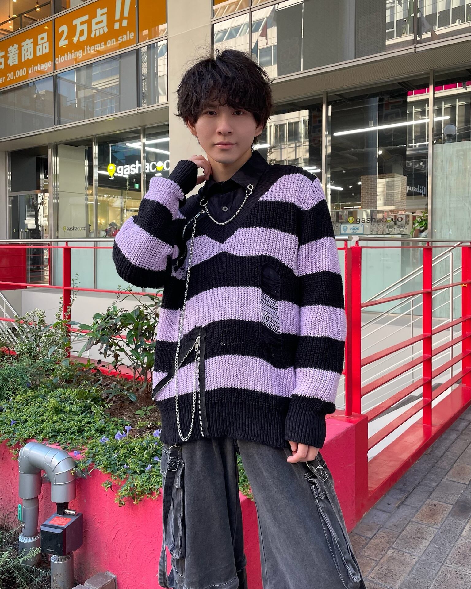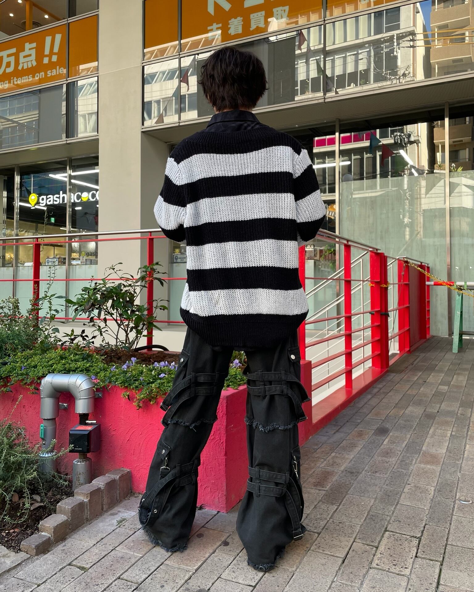 随所に施したダメージ加工がインパクト大!ZIPチェーン付き☆薄手の生地感となります。y2k、サブカルにも着用頂ける一枚。