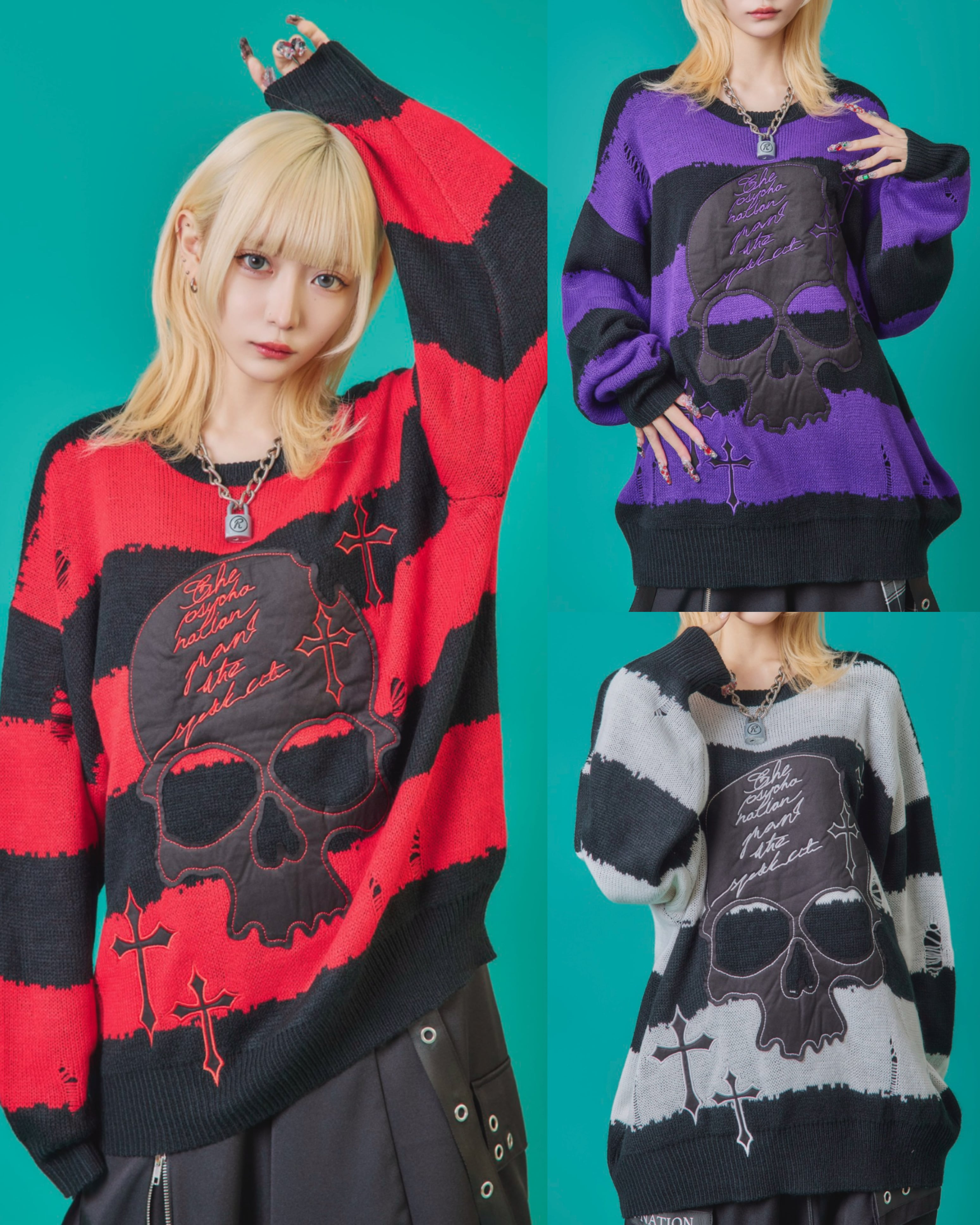 スカルボーダーニット(3color)
