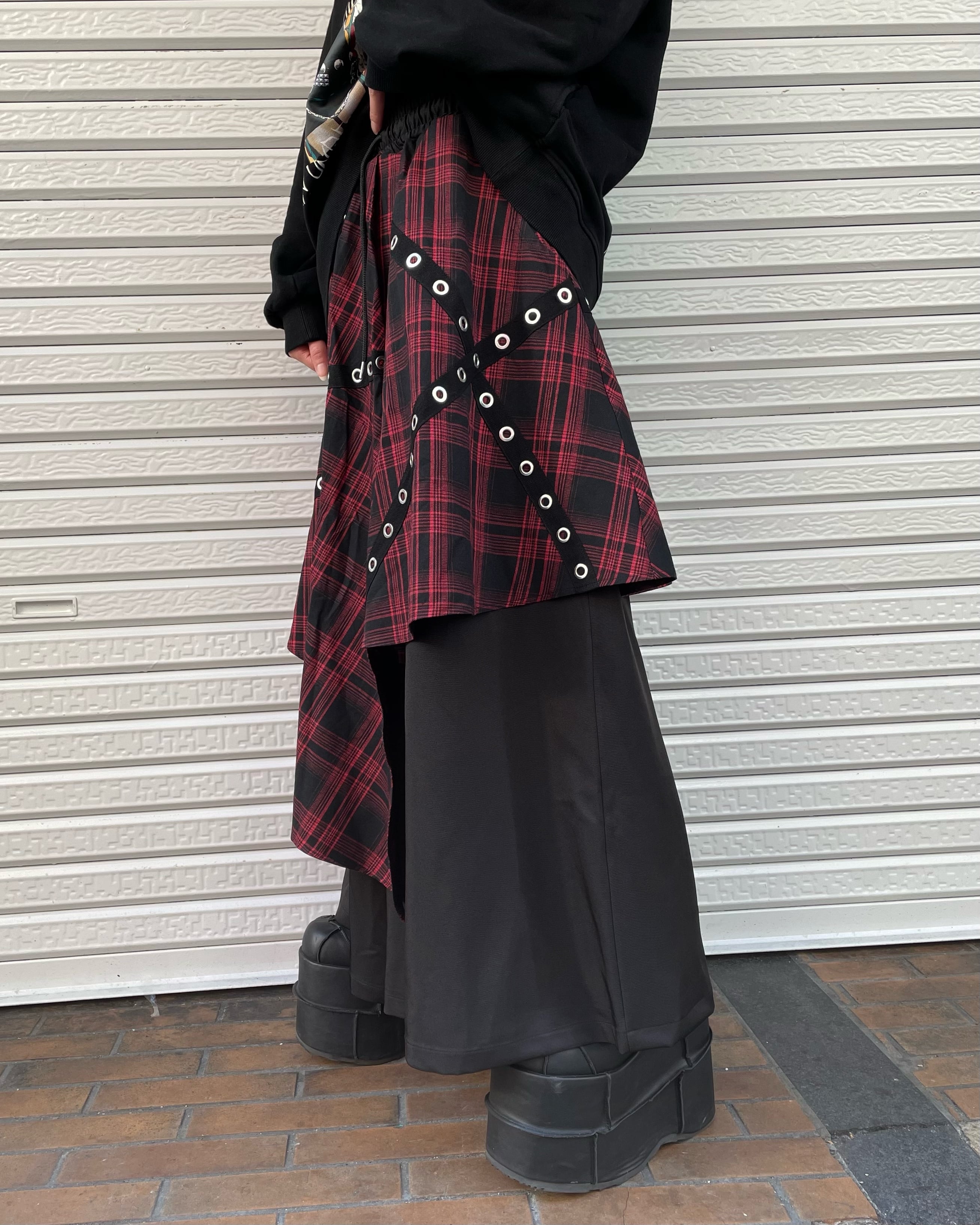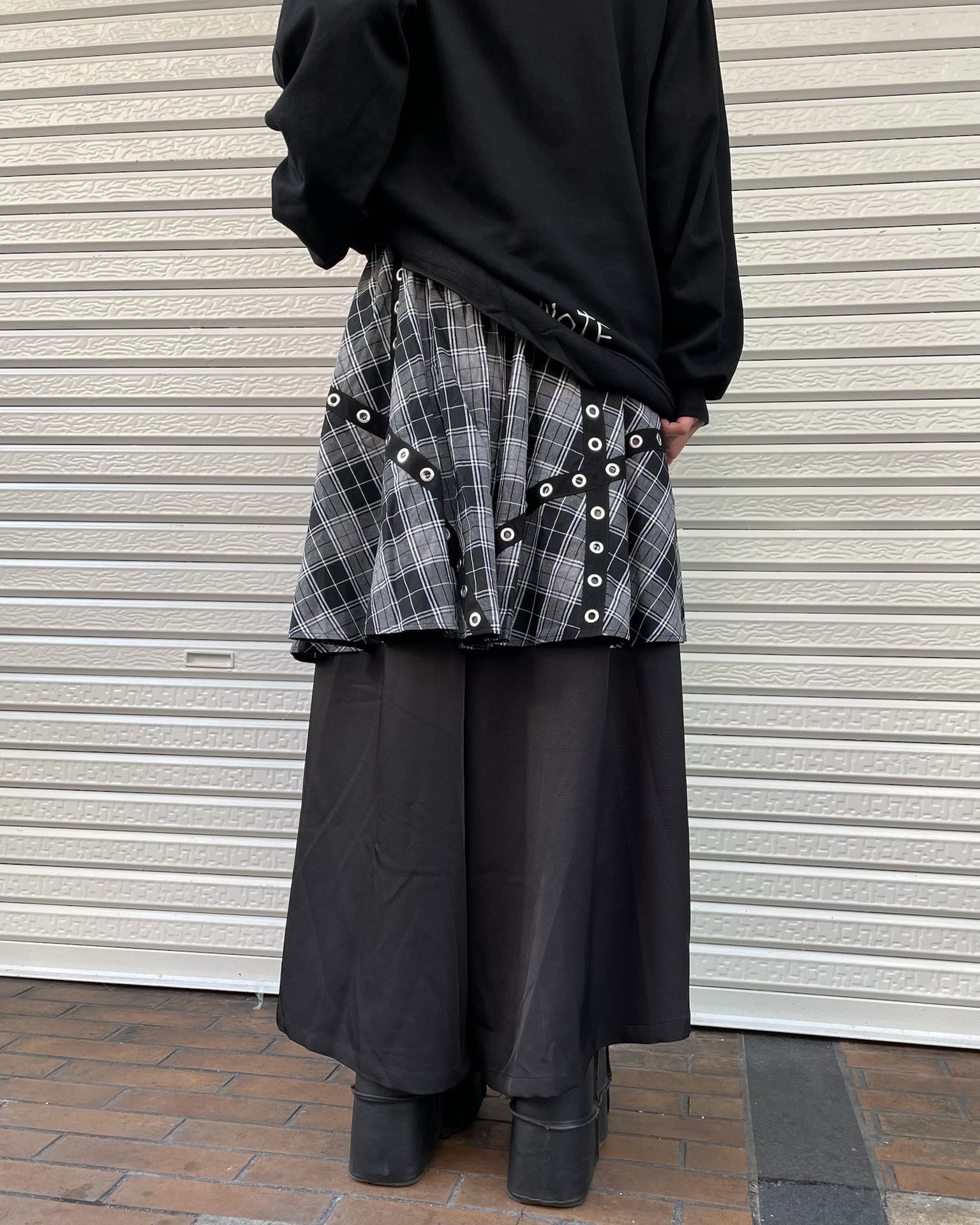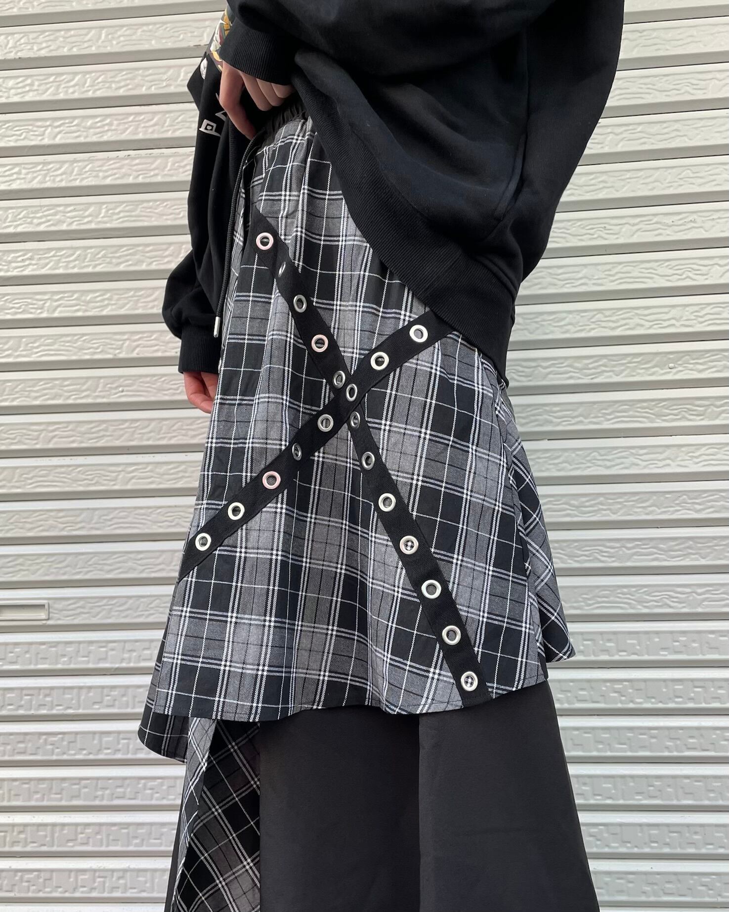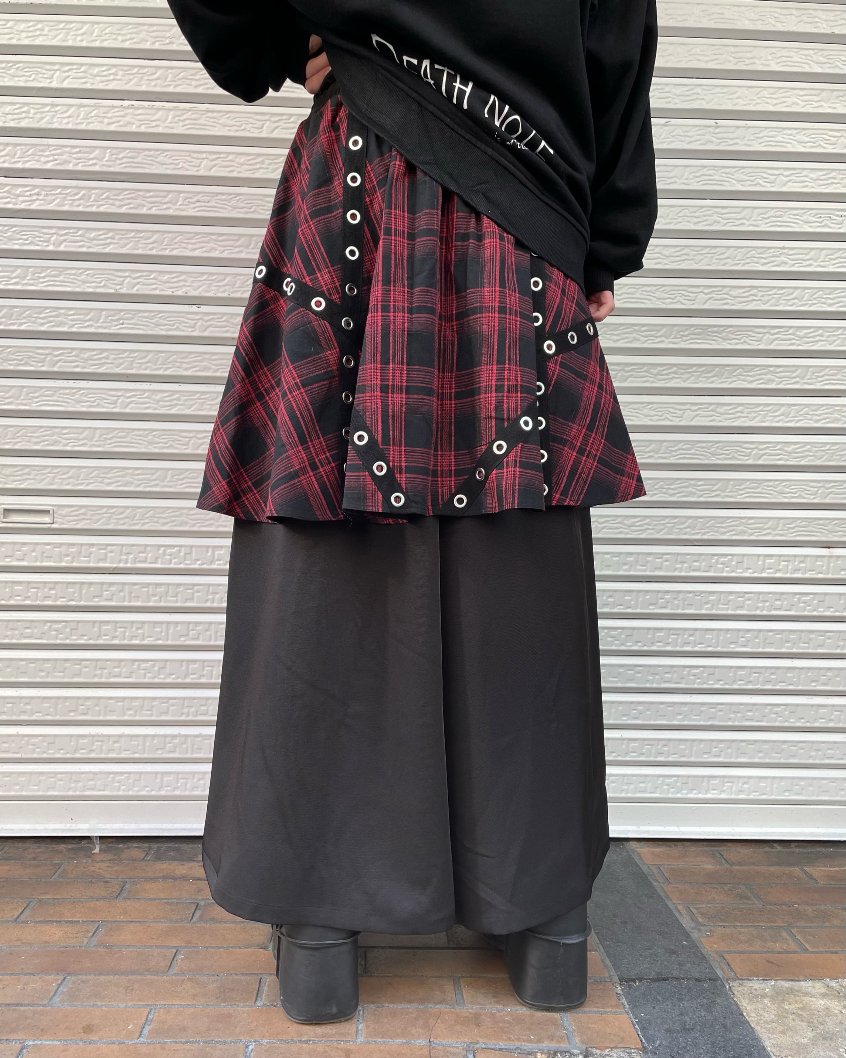 チェック柄レイヤードワイドパンツ(3color)