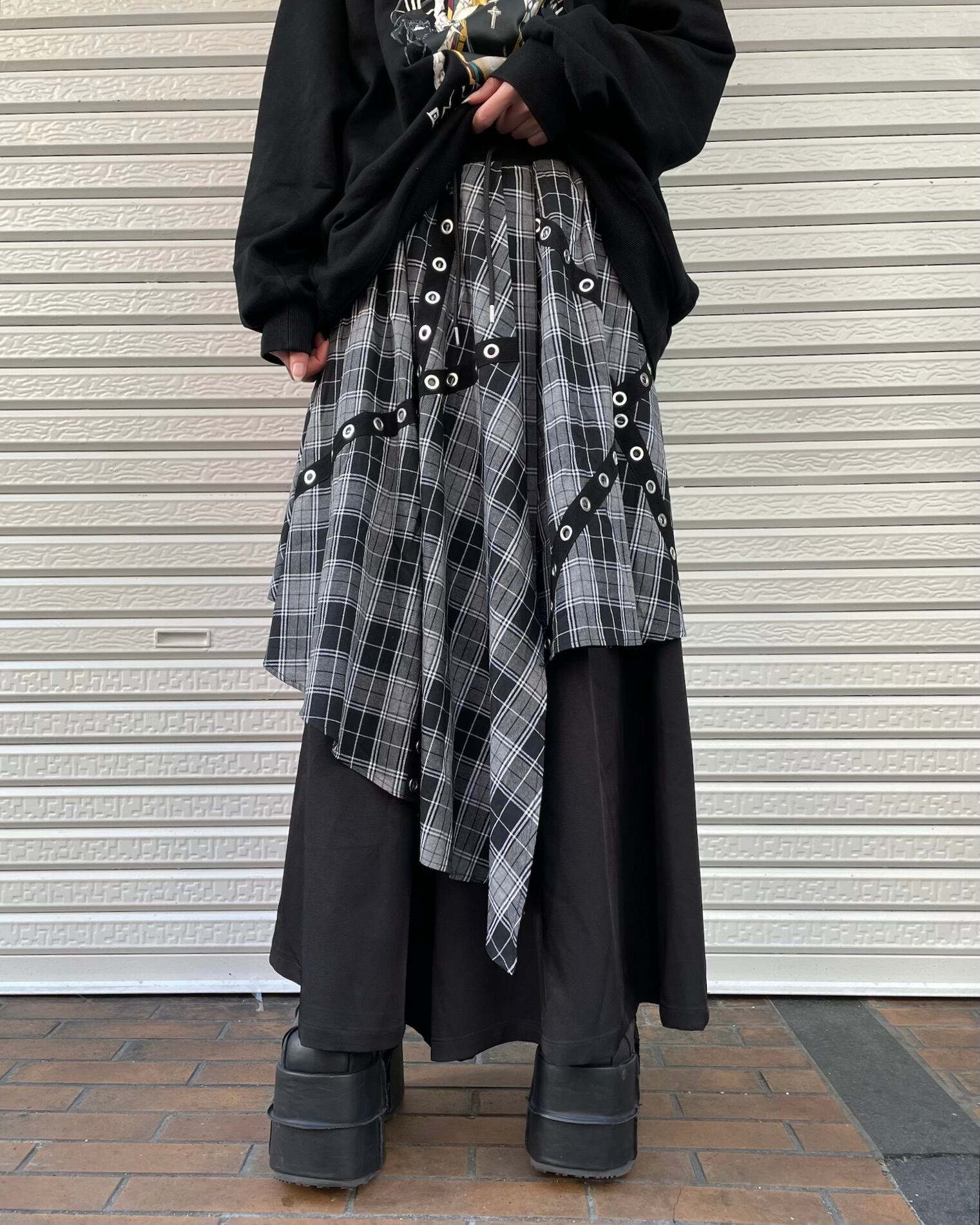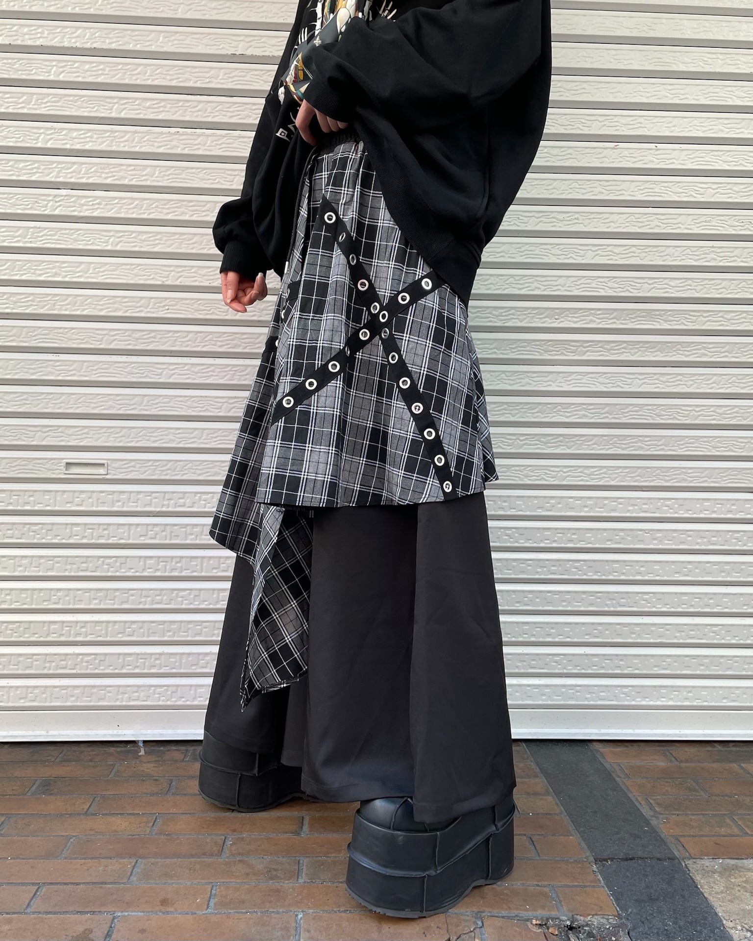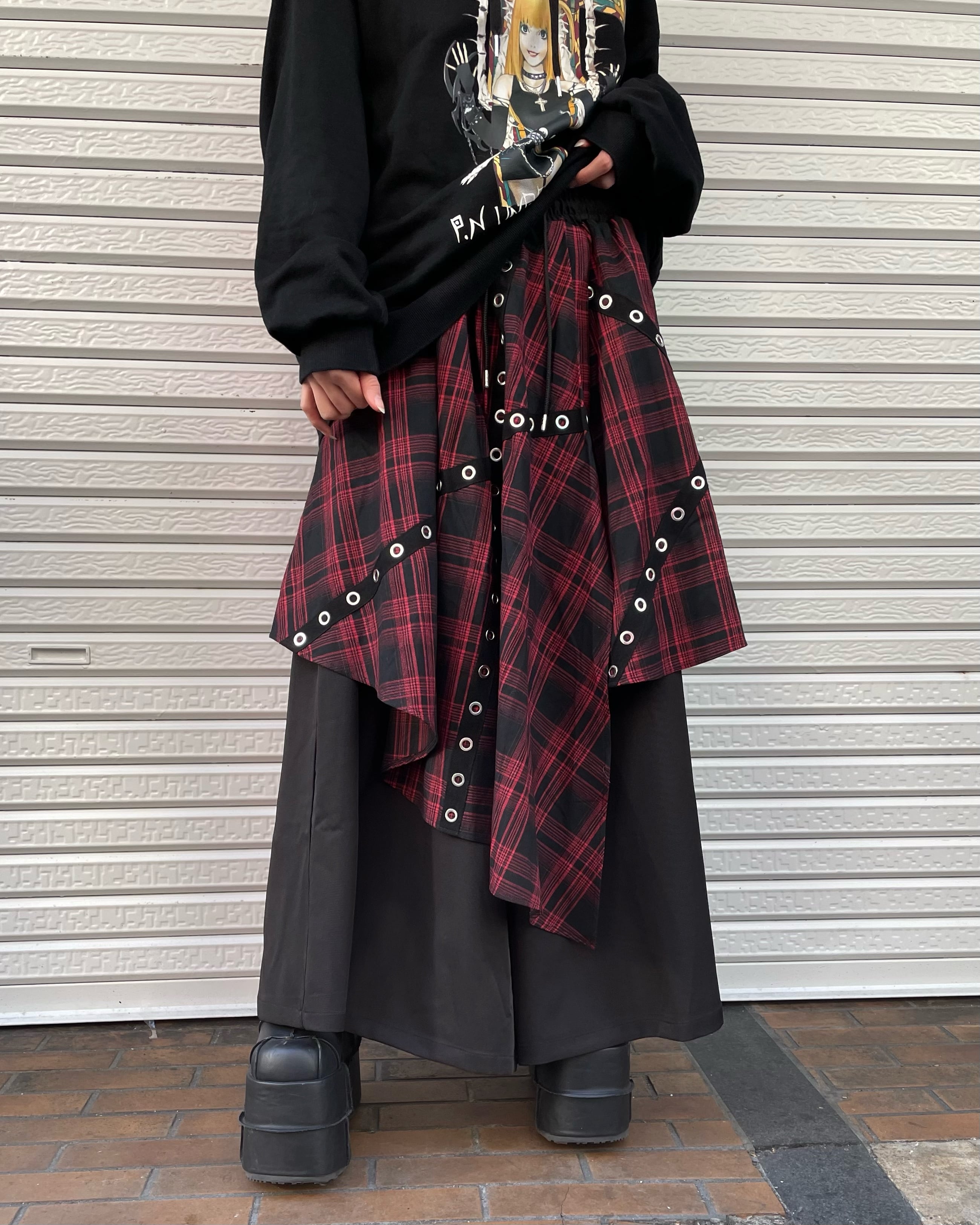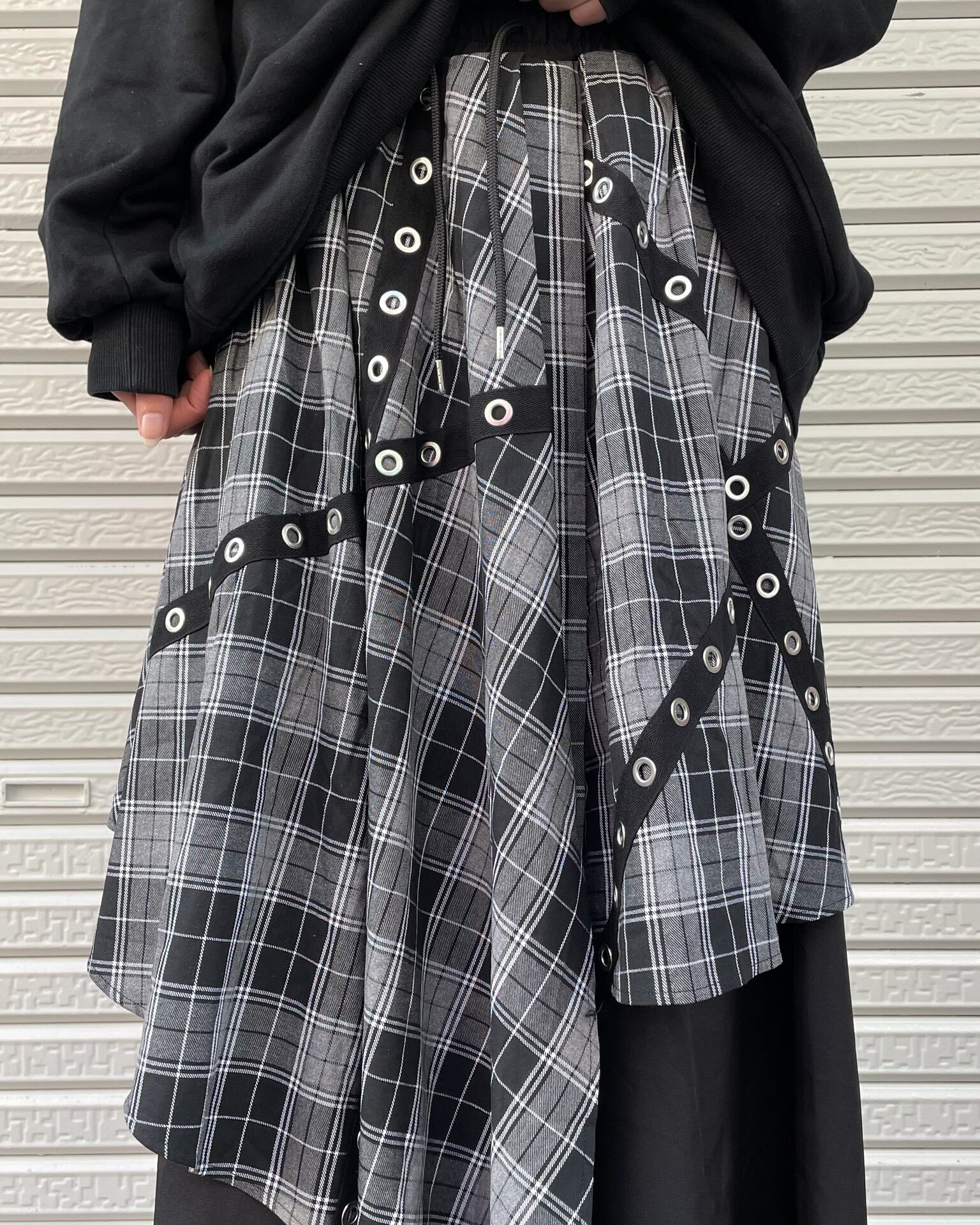 チェック柄レイヤードワイドパンツ(3color)