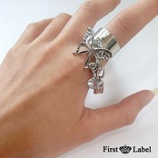BIGなバタフライチャームにクロス・ハートダイヤ・鎖南京錠の3連チェーンリング☆綺麗めで可愛い個性的なアイテム!簡単にサイズ調節が出来るので、お好みのサイズで楽しめるのも嬉しいポイント◎