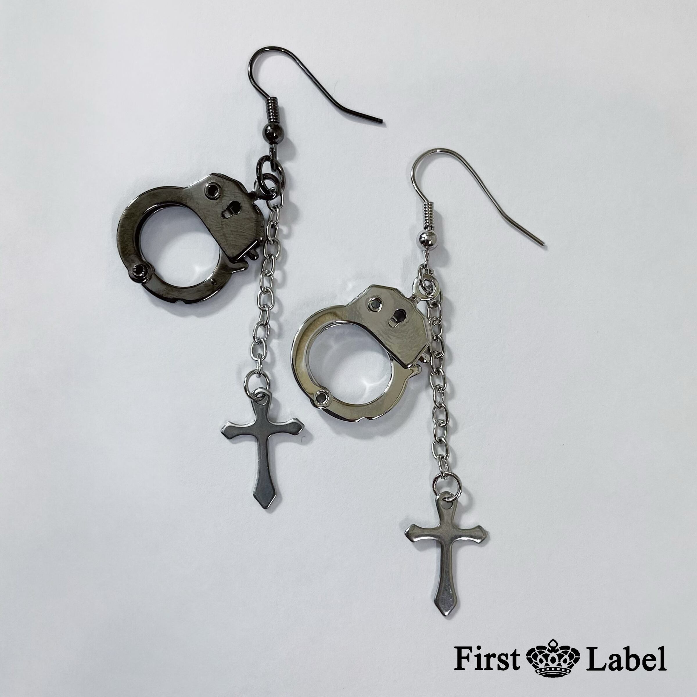 手錠とクロスチャームが揺れる2連チェーンピアス!シンプルながらも長さのあるデザインなので付けてる存在感も抜群◎
