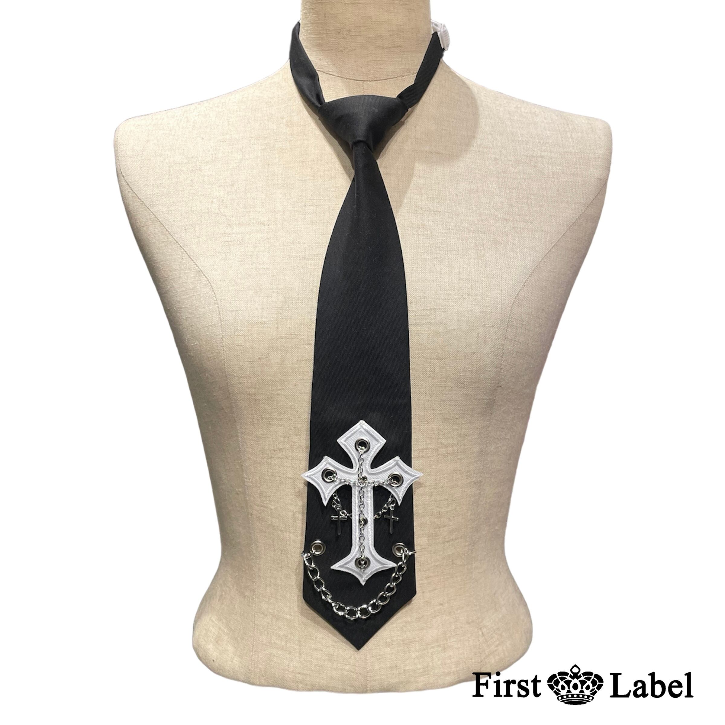 ワンタッチで付け外しが楽ちんな白十字にチャームが沢山付いた存在感抜群ネクタイ☆シンプルなシャツをキリっと決める魔法のアイテム! オールシーズン活躍!メンズもレディースもOK◎ 気分を換えてオシャレしてお出掛けするときにもってこいのアイテム!