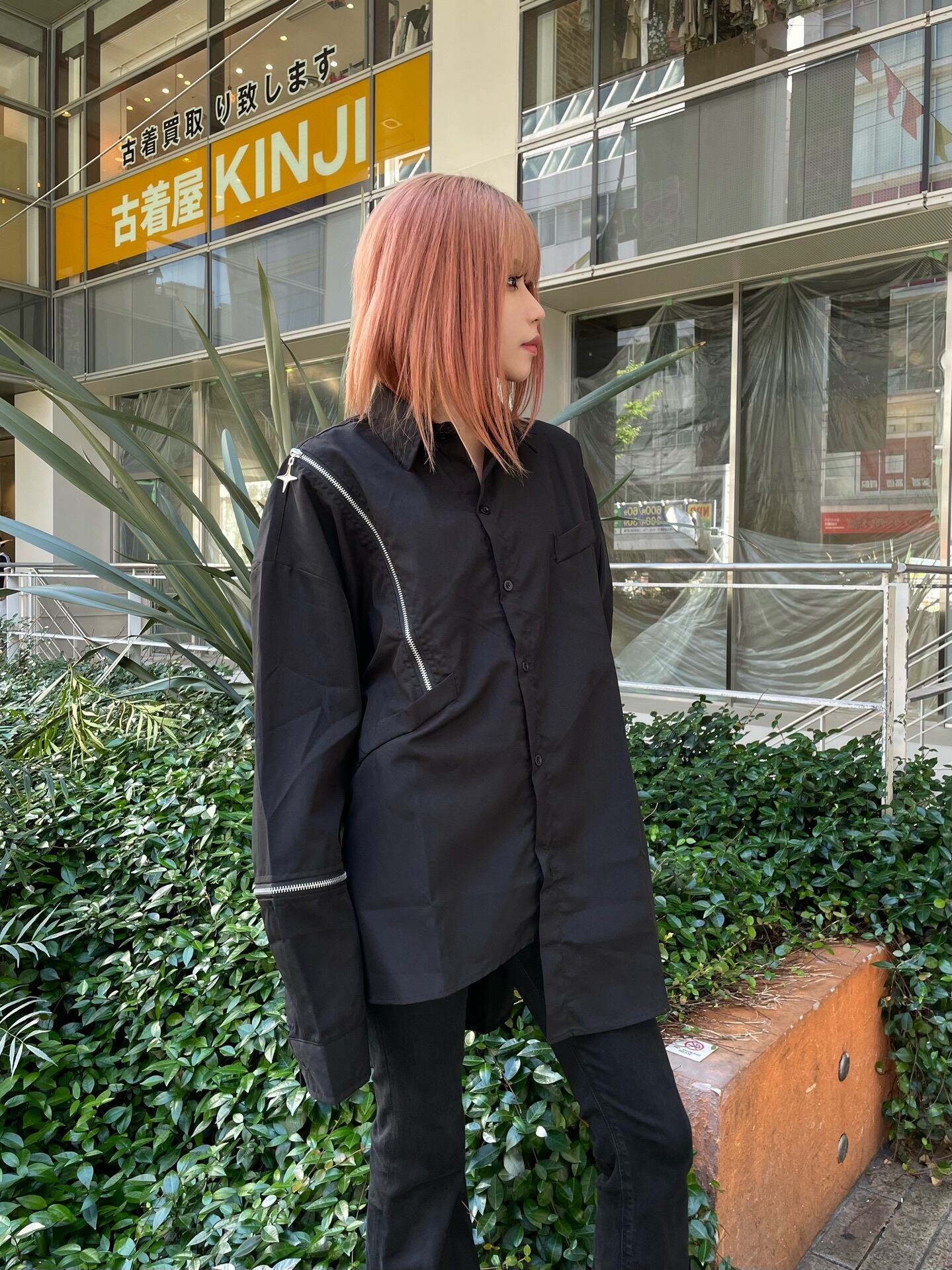 所々にジッパーが付いたBIGデザインシャツ!無地なのに程よい装飾品が着いていてモードにもサブカルにも着用頂ける一枚。