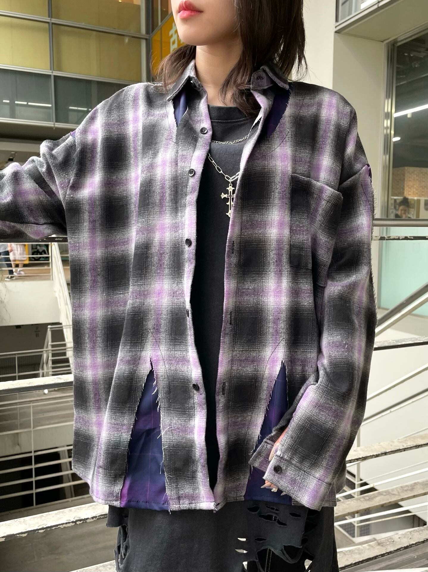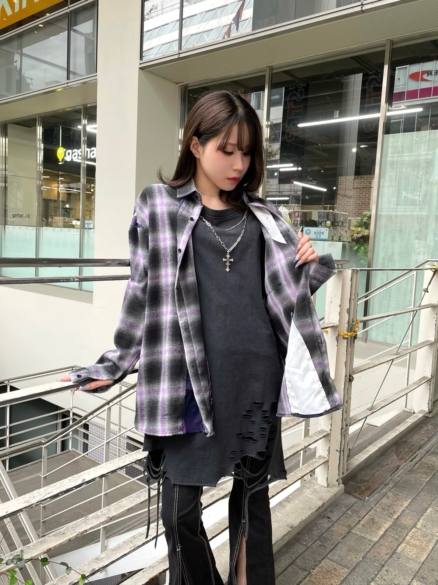 秋冬物定番のチェック柄にダメージが入ったデザインのネルシャツ!カジュアルにもサブカルにも着用頂ける一枚。一枚着、羽織り代わりとしてもお使い頂けます◎