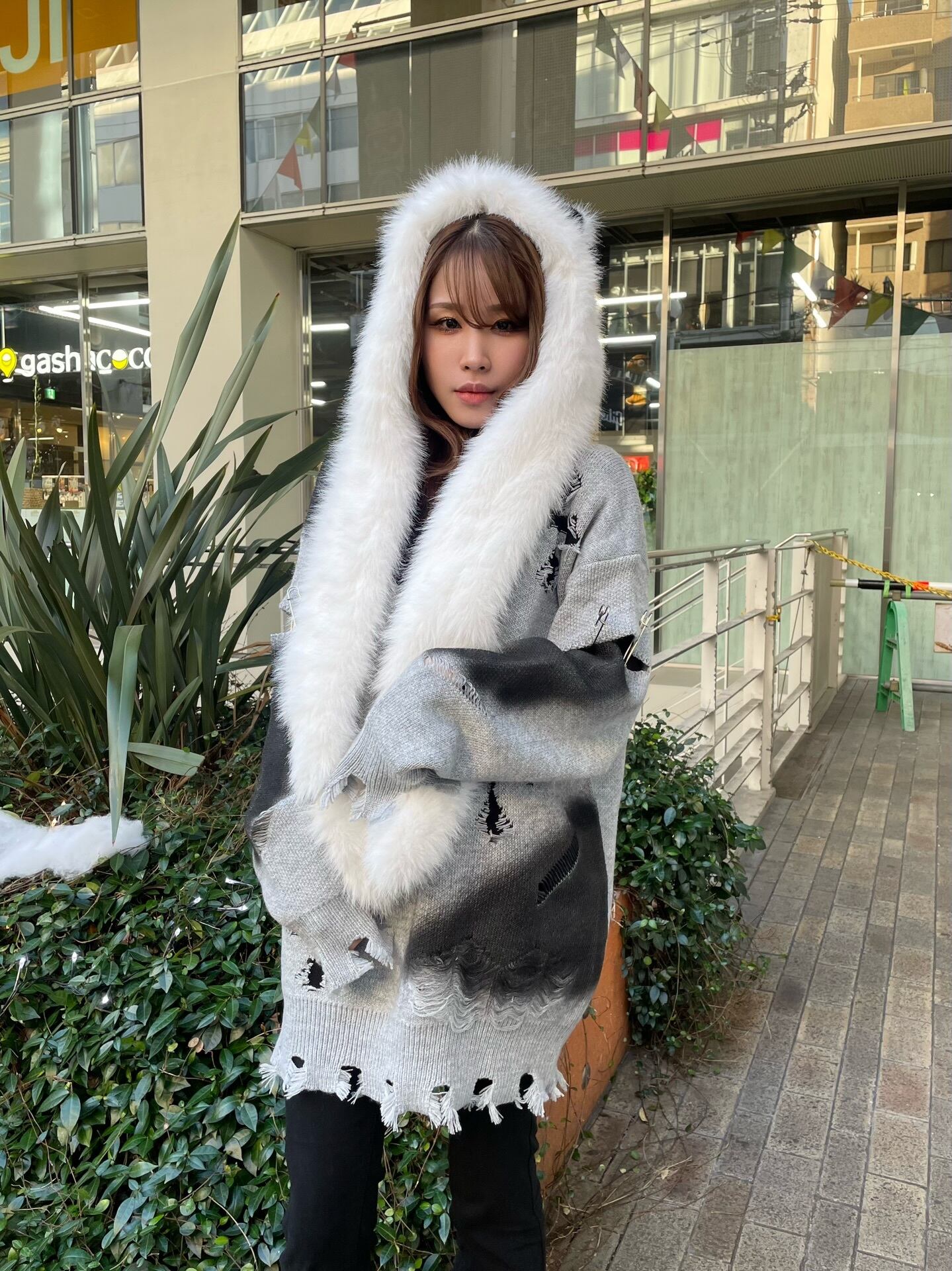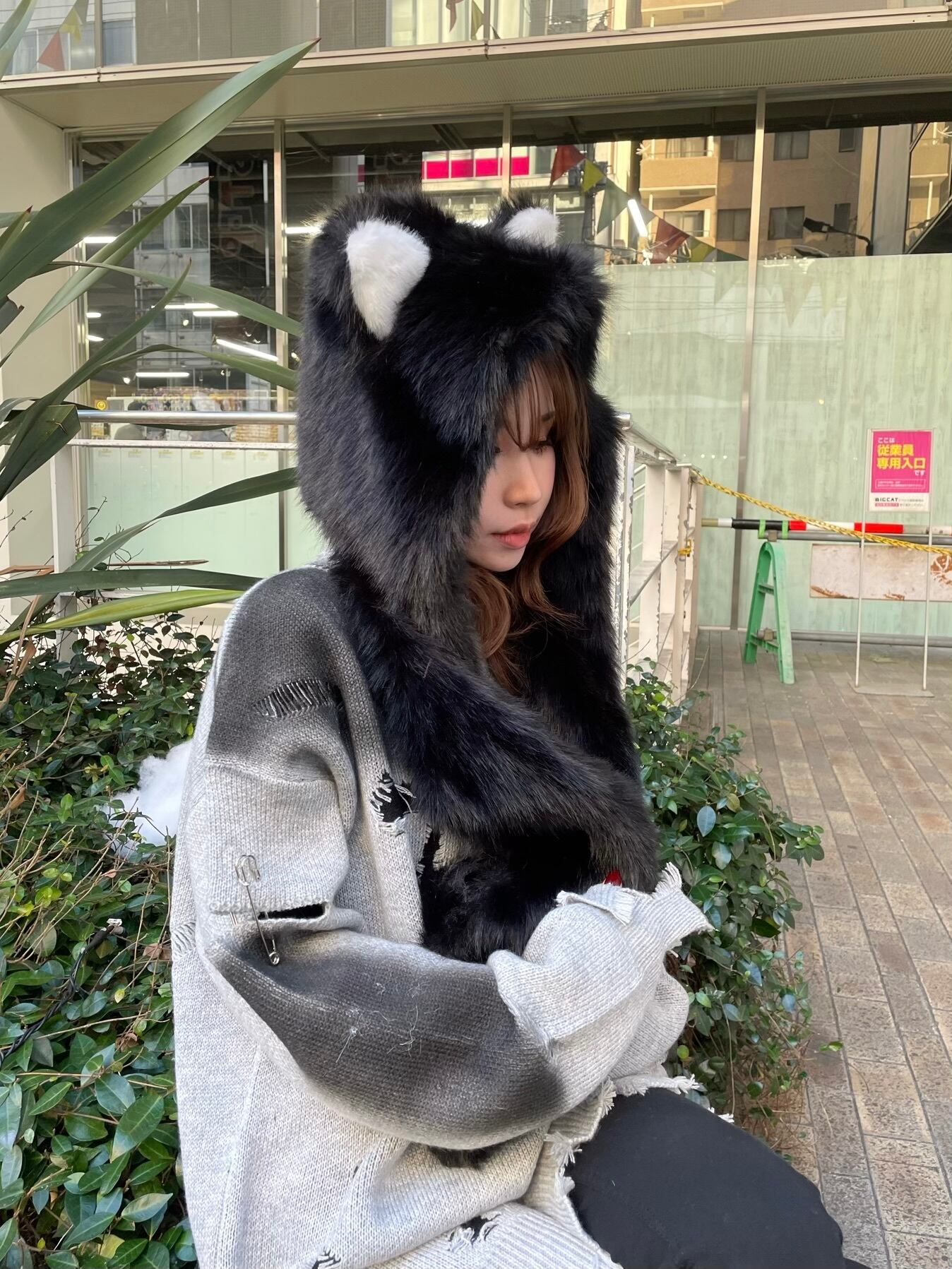手袋ポケット付き猫耳ファーデザインのフードスカーフ!もこもこで可愛い冬のワンポイントアイテム⭐︎選べる2color!
